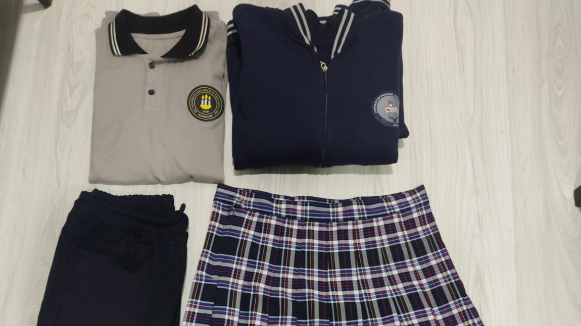Okulumuza ait üniforma görselleri içerik bölümüne eklenmiştir. Üniforma içeriği gri tişört ve gri sweet, lacivert polar hırka, erkek öğrenciler için lacivert pantolon, kız öğrenciler için görseldeki kareli etekten oluşmaktadır. Tüm öğrencilerimizin okula üniforma ile gelmeleri zorunludur.