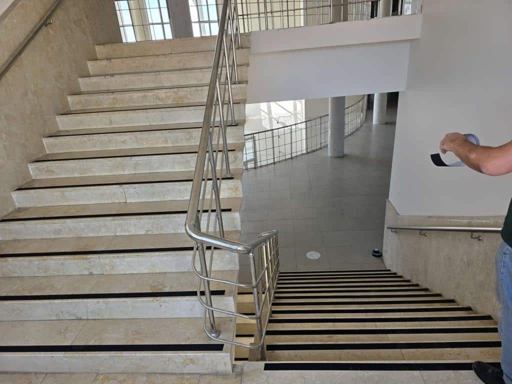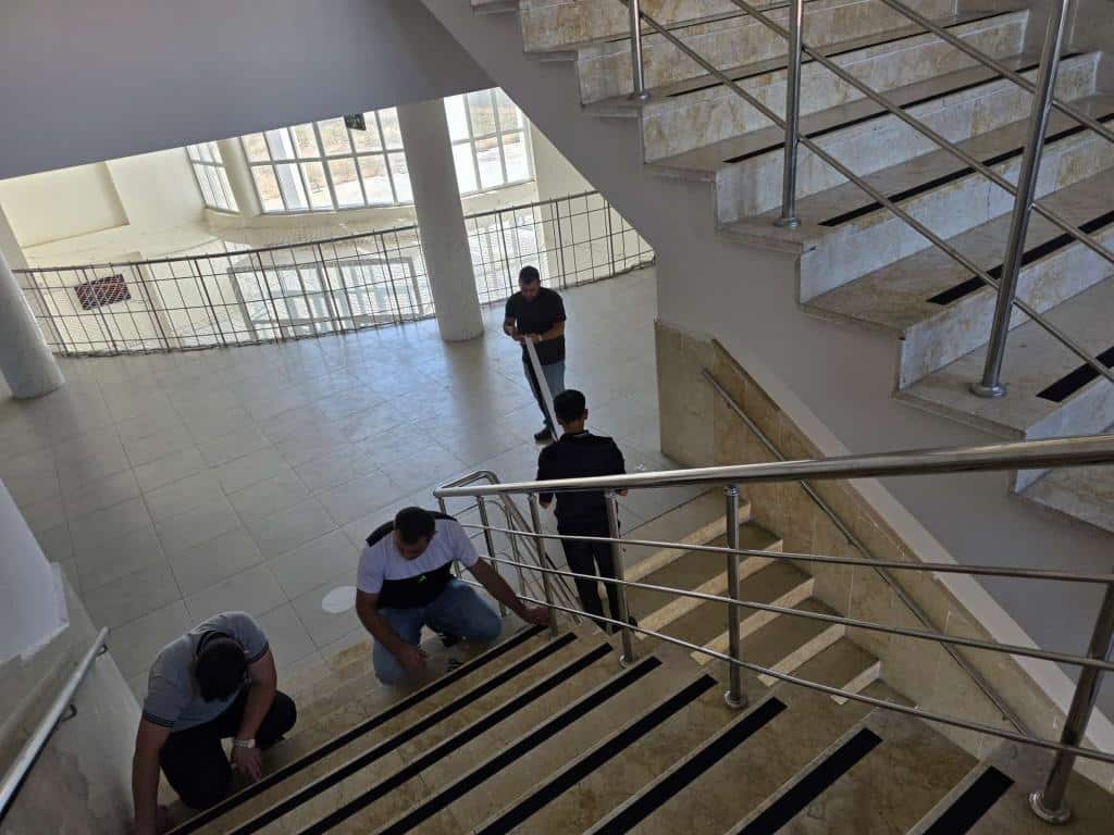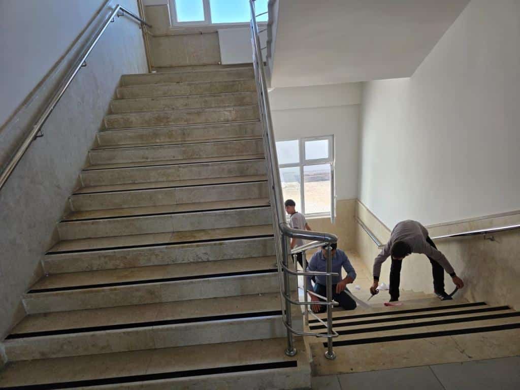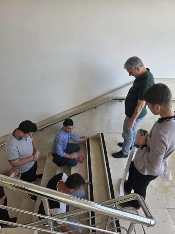 - İSG kapsamında okulumuzun tüm merdivenlerine siyah bantlı kaydırmazlar uygulandı.